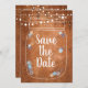 Designed to coordinate with our Rustic Mason Jar String Lights wedding collection. Featuring string lights above an artsy mason jar filled with your personalised save the date details and scattered delicate flowers. Designed by Thisisnotme©