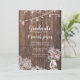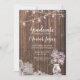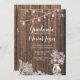 Old Fashioned Graduation Invitation for her - Pink string lights , ivory old fashioned lace and a mason jar with baby's breath and sweetpeas in lavender and pink all on a rustic barn wood background