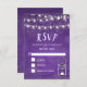 Ultra Violet Rustic wedding RSVP cards feature woodgrain photo background, string of twinkle lights and mason jar with a candle. Mix and match these wedding RSVP cards with our collection of matching wedding stationery and favours.