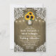 Rustic Mason Jar Sunflower Wedding Invitations - feature a unique barn wood background with elegant lace and twinkle string lights. This design also features a mason jar full of sunflowers and baby's breath. The mason jar is decorated with initials that you can change to those of your choice. NOTE: this product is presized at 4.5 x 6.25 inches. If you need a 5x7 inch invite, you can resize this template yourself or find the 5x7 template that's located in the matching collection found on this page.
