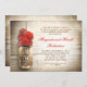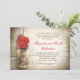 Romantic rustic wood background and mason jar with red flowers wedding anniversary party or anniversary dinner invitations. I suggest a beautiful linen texture paper for this design.