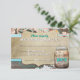 Rustic Mason Jar Wedding Reception RSVP Card. Let all your guests rsvp in style with these Rustic Mason Jar Wedding Reception RSVP Cards. Features a brown wood background with floral elements on the edges. A parchment paper like background label holds all your rsvp text in serif and sans serif fonts. A polka dot blue background is behind the label. On the backside is the wood background with a mason jar that holds the text RSVP. Underneath the jar is the wedding location.