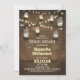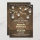 Perfect invitation for vintage country bridal shower with mason jars and strings of lights. Design consists from rustic wood background sparkling night lights with hanging mason jars. Please contact me if you need help with customisation or have a custom colour request.
