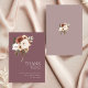 Rustic Mauve Peach Floral Wedding Thank You Card. Express your gratitude with this elegant thank you card, featuring a classic serif font and soft peach florals on a dusty mauve background. A romantic and timeless finish to your wedding suite, perfect for spring or vintage-inspired celebrations.