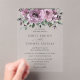 Invite your guests in style with our exquisite acrylic wedding invitations, featuring a stunning mauve purple, lilac, plum floral and greenery design.  Easily personalise your invitation by clicking the "Edit Using Design Tool" button to re-arrange and format the text to your liking. Choose from two exquisite finishes: Clear or Frosted, and select between two stylish corner options: Rectangle or Arched.