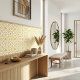 Bring a touch of Mediterranean charm into your space with this stylish rustic azulejo-inspired ceramic tile design. Featuring a delicate Portuguese pattern in a warm mustard yellow set against a crisp white background, this piece effortlessly balances tradition with a clean, modern aesthetic.