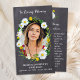 Rustic Daisy Floral Sympathy Funeral Prayer Cards. This modern yet elegant memorial prayer card features a daisy flowers on a rustic chalkboard design . Front "In Loving Memory" Personalise this memorial funeral prayer card with your loved ones photo, name & dates, and sentiment. Back ~ 'May You Always Walk In Sunshine' Poem, which can be personalised, please reach out if you would like a design with a specific poem other than. This memorial prayer card will be a treasured keepsake, for funeral services, and celebration of life. COPYRIGHT © 2020 Judy Burrows, Black Dog Art - All Rights Reserved. Rustic Memorial Floral Photo Funeral Prayer Card