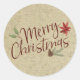 These round stickers are perfect for sealing up your Christmas card envelopes. They feature the message "Merry Christmas" in maroon against a burlap style tan background with poinsettia and pine bough accents.