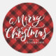 Rustic Merry Christmas Script Red Plaid Classic Round Sticker