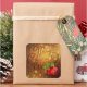 Unique, classic, trendy, pretty and decorative Holiday sticker. Cute 'Merry Christmas' quote text written in typography on faux wood looking planks patter. With red star shaped and round baubles and green coloured pine leaves.