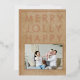 Rustic Merry Jolly Happy Blue Family Photo Christmas Gold Rose Foil Holiday Card. Happy, jolly, merry in gold foil on a rustic beige background. Add your family photo and name.