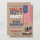 This rustic US Military boots & American flag deployment / overseas active duty base going away / farewell Party double- sided invitation with the saying "CALL OF DUTY PARTY" over rustic kraft background on front, and "When Duty Calls, The Brave Answer" design on back, is a great way to send off a brave Airman (Air Force), Guardian (Space Force), Soldier (Army), Marine (Marines), Sailor (Navy), or Coast Guardsman (Coast Guard) who is heading to deployment / to their new overseas Active Duty Base! ♥ Lovingly created by an Air Force Mum ♥ Featuring a rustic kraft background on both sides with drip USA flag, watercolor US flag combat boots, and vintage red, white, and distressed blue patriotic typography, it is an invitation template for you to easily personalise each line for any branch of service! Need to adjust placement or make fonts bigger/smaller to fit the space provided? No problem! Simply click the blue "Edit using design tool" button at the bottom of the "Personalise" window, click on the element that needs adjusting, and click the "done" button at the top right corner to complete. **Our son is a recent F-16 Crew Chief vet, so I too, had a hard time finding appropriate invitations and cards for BMT & Graduation & Active Duty - all my designs for the full training process, here in my Zazzle store, were created in honour of our son and all our brave military service personnel and families. See all my invitations / cards (available for print & ship or instant digital download for those in a rush) / clothing / vinyl graduation banners / and much more for BMT, Grad Weekend and beyond, available in my store by clicking the blue “by FigLilyCo-military” link in the upper right hand corner of this screen and then click my store name under my photo to see the entire collection. **Custom order requests are always welcome - click the "message" button, or email direct (with a quick response): contact@figandlilyco.com. ♥ From this proud military family to you and yours - we send our sincere blessings, and HUGE thanks for the service, courage, and sacrifice of your US Service Personnel ♥
