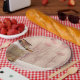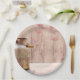 Paper plates with a rustic country design. An old rusting milk can with wheat and faded red poppies in the background set against a faint wood panel. Wood is just an image, not real.
