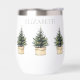 This simple and minimal Christmas wine tumbler features small rustic Christmas tree with white lights. Personalise with your choice of special text. Makes great personalised party favours for your holiday event.