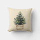 This simple and minimal Christmas throw pillow features a small rustic Christmas tree with white lights.