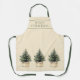 This simple and minimal Christmas kitchen apron features small rustic Christmas trees with white lights in shades of green and cream. Personalise with your choice of special holiday text.