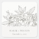 Rustic Minimal Elegant Brown Floral Sketch Wedding Square Sticker
