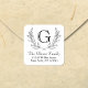 Rustic Minimalist Wreath Family Monogram Address Square Sticker