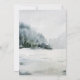 Elements: watercolor painting of rustic mountain lake in winter; elegant serif and sans serif fonts. Colours: blue, green, grey, white, offwhite. Themes: mountains, lakes, outdoor wedding, winter wedding, elegant, rustic, impressionist, watercolor, snowy mountains. Collection: Rustic Mountain Lake Watercolor Wedding Collection. Product Type: Classic Invitation - Vertical