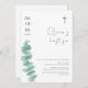 Rustic Modern Greenery Eucalyptus Cross Baptism Invitation