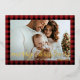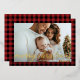 Rustic Modern cottage style inspired holiday card featuring a red and black buffalo plaid border. Your family photo is elegantly framed with the plaid and stylish script for "Merry Christmas" in real gold foil.  Personalise with your family name and year to send a thoughtful, stylish, and beautiful holiday card to your loved ones. The same buffalo, red and black plaid pattern fills the backside for an elegant touch.