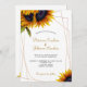 Elegant modern chic summer or fall wedding stylish invitation template with chic calligraphy faux gold script featuring a beautiful sunflowers bouquet over a geometric golden frame. ++++++++++++++++++ Easy to personalise with your details! +++++++++++++ The invitation is suitable for modern elegant summer or autumn fall rustic outdoor backyard or garden weddings.