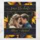 Rustic modern sunflowers wedding photo save date wine label