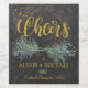 Cheers gold typography script and rustic modern winter wreath with pine bough and dried branches with your name / names and wine sort on dark grey chalkboard background making an inspired personalised wine label for your rustic winter nature, evergreen, forest wedding or other winter night events.