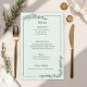 Share your wedding feast with guests in style using this rustic monochrome wedding menu card. Featuring floral accents and elegant script fonts, this design complements barn, country, or garden weddings perfectly. Available in dusty blue, sage green, or warm taupe, the one-colour palette creates a timeless rustic look. Customise with your courses or buffet selections to complete your wedding reception stationery suite.