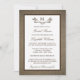 The design features a monogram branch design on a rustic burlap effect background.