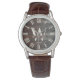 The watch looks really great! Very sharp and well done. The leather band is really nice, though for a man's watch I think it should be longer. Unfortunately, it isn't big enough for my husband's wrist but I will get a replacement because he is very excited to wear it!