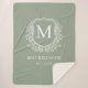 Rustic Monogram Sage Green Crest Newlywed Wedding Sherpa Blanket