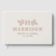A simple initial surrounded by rustic branches makes this guest book a perfectly personalised touch to your wedding. Also featuring a large last name along with first names and date in rose gold, this wedding guest book can be customised to your preferences. The off-white background allows for the rose gold text to shine. Other colours also available. Find coordinating wedding reception decor, favours and more in the collection.