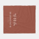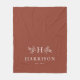 As a coordinating piece of the Rustic Monogram collection by Lea Delaveris Design, this blanket features a stylish terracotta burnt orange background with a monogram surrounded by branches along with a last name and established date. Perfect for a housewarming or wedding gift, it also makes a great shower gift or anniversary keepsake.