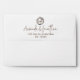 Our wedding invitation envelope features modern calligraphy combined with a monogram in a leaf wreath on a simple white background. Add your address and the address of your guests for easy mailing. Please shop our store for coordinating items.