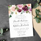 Elegant floral wedding invitations featuring your details in modern calligraphy script below a border of watercolor roses and greenery in shades of blush, peach, purple, burgundy & green. The invitation reverses to a burgundy watercolor background. Perfect for spring, summer & fall weddings!