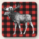 Rustic Moose Red & Black Buffalo Plaid Man Cave Coaster