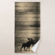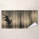 A rustic bathroom towel set featuring a walking moose silhouette against a wood background. Perfect for home bathroom decor or rustic cabin decor.