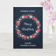 Merry Christmas for mother and father card with rustic country snowy wreath and winter foliage with poinsettias.