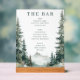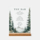 This is a rustic style image featuring an elegant bar menu set against a serene mountain backdrop. The composition includes tall, lush pine trees and delicate wildflowers at the base of snow-capped mountains, creating a tranquil and inviting atmosphere. The menu lists various beverages including beer, wine, and spirits in a clean, organised manner. It feels like stepping into a cosy alpine lodge where you can enjoy a refreshing drink while taking in nature's beauty. Perfect for outdoor enthusiasts or anyone looking to add a touch of wilderness charm to their decor.