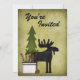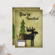 Personalised Rustic Mountain Country Silhouette Moose Birthday Party Invitation with Green Background.
