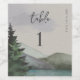 Rustic Mountain Evergreen Wedding Table Number Wine Label