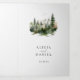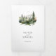Rustic elegant tri fold wedding invitation with watercolor pine trees forest landscape and with a chic simple classy minimalist typography script. +++++++++++ Suitable for summer, autumn fall or winter mountains, outdoor camping adventures woodland wilderness evergreen destination weddings.