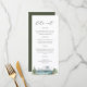 This menu features a bohemian watercolor mountain lake painting and elegant calligraphy font. This menu is perfect for your rustic camp or outdoor themed event.