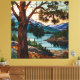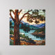 Rustic mountain range landscape stain glass canvas print