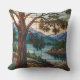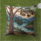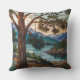 Rustic mountain range landscape stain glass cushion