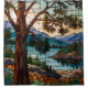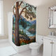Rustic mountain range landscape stain glass shower curtain