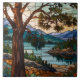 Rustic mountain range landscape stain glass tile