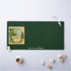 A vintage rustic image; a circular vignette featuring mountains and conifer trees with snow in the branches surrounded by a floral motif. Customise by adding your own text.
