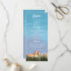 Rustic wedding program featuring illustration of red mountains with pine tree forest. All the wedding ceremony information and the wedding party's name listed on this program. Perfect for a fall or winter wedding.